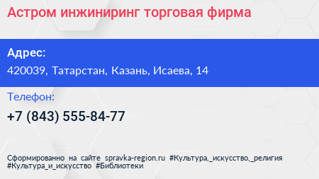 Астром инжиниринг, торговая фирма по адресу 420039, Татарстан, Казань, Исаева, 14 в дальнейшем Организация, размещена в следующих категориях: