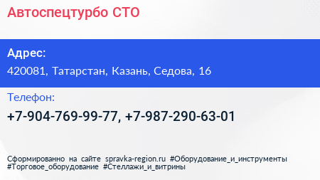 Автоспецтурбо, СТО по адресу 420081, Татарстан, Казань, Седова, 16 в дальнейшем Организация, размещена в следующих категориях: