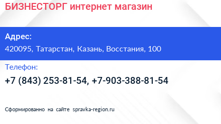 БИЗНЕСТОРГ, интернет-магазин по адресу 420095, Татарстан, Казань, Восстания, 100 в дальнейшем Организация, размещена в следующих категориях: