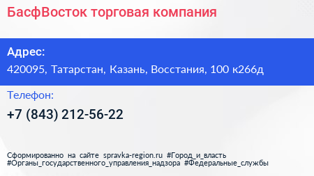 БасфВосток, торговая компания по адресу 420095, Татарстан, Казань, Восстания, 100 к266д в дальнейшем Организация, размещена в следующих категориях: