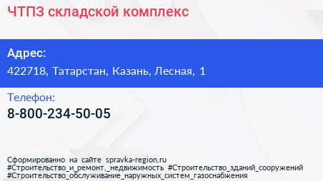 ЧТПЗ, складской комплекс по адресу 422718, Татарстан, Казань, Лесная, 1 в дальнейшем Организация, размещена в следующих категориях: