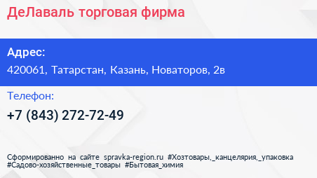 ДеЛаваль, торговая фирма по адресу 420061, Татарстан, Казань, Новаторов, 2в в дальнейшем Организация, размещена в следующих категориях: