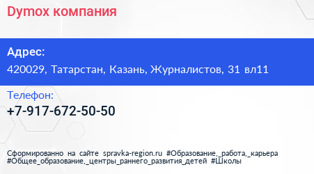 Dymox, компания по адресу 420029, Татарстан, Казань, Журналистов, 31 вл11 в дальнейшем Организация, размещена в следующих категориях: