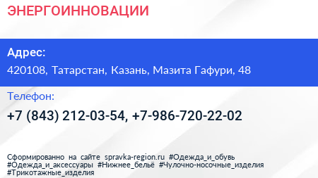 ЭНЕРГОИННОВАЦИИ по адресу 420108, Татарстан, Казань, Мазита Гафури, 48 в дальнейшем Организация, размещена в следующих категориях: