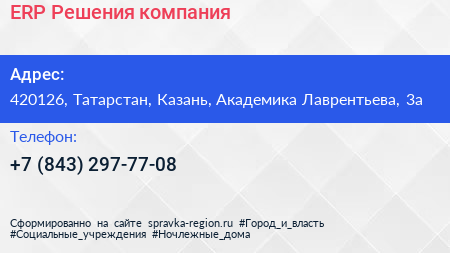ERP Решения, компания по адресу 420126, Татарстан, Казань, Академика Лаврентьева, 3а в дальнейшем Организация, размещена в следующих категориях: