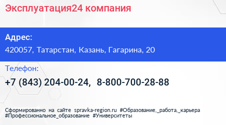 Эксплуатация24, компания по адресу 420057, Татарстан, Казань, Гагарина, 20 в дальнейшем Организация, размещена в следующих категориях: