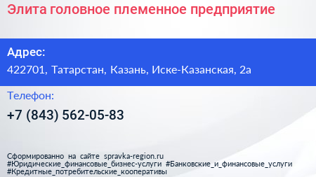 Элита, головное племенное предприятие по адресу 422701, Татарстан, Казань, Иске-Казанская, 2а в дальнейшем Организация, размещена в следующих категориях: