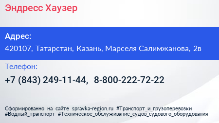 Эндресс+Хаузер по адресу 420107, Татарстан, Казань, Марселя Салимжанова, 2в в дальнейшем Организация, размещена в следующих категориях: