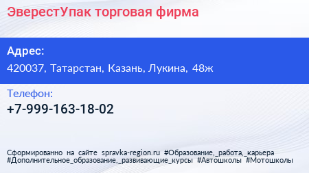 ЭверестУпак, торговая фирма по адресу 420037, Татарстан, Казань, Лукина, 48ж в дальнейшем Организация, размещена в следующих категориях:
