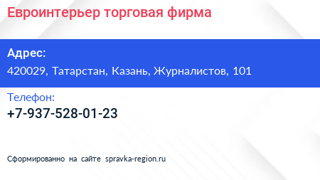 Евроинтерьер, торговая фирма по адресу 420029, Татарстан, Казань, Журналистов, 101 в дальнейшем Организация, размещена в следующих категориях: