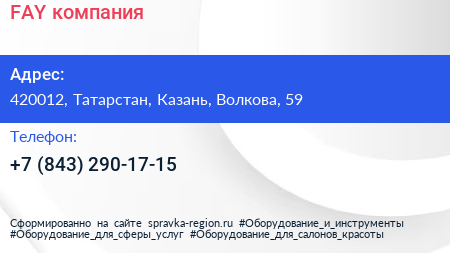 FAY, компания по адресу 420012, Татарстан, Казань, Волкова, 59 в дальнейшем Организация, размещена в следующих категориях: