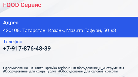 FOOD Сервис по адресу 420108, Татарстан, Казань, Мазита Гафури, 50 к3 в дальнейшем Организация, размещена в следующих категориях: