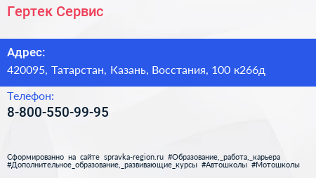 Гертек-Сервис по адресу 420095, Татарстан, Казань, Восстания, 100 к266д в дальнейшем Организация, размещена в следующих категориях: