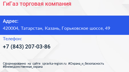 ГиГаз, торговая компания по адресу 420004, Татарстан, Казань, Горьковское шоссе, 49 в дальнейшем Организация, размещена в следующих категориях:
