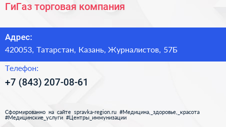 ГиГаз, торговая компания по адресу 420053, Татарстан, Казань, Журналистов, 57Б в дальнейшем Организация, размещена в следующих категориях: