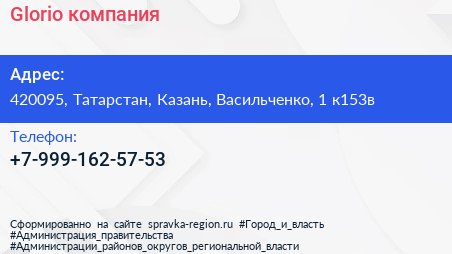 Glorio, компания по адресу 420095, Татарстан, Казань, Васильченко, 1 к153в в дальнейшем Организация, размещена в следующих категориях: