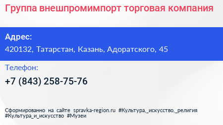Группа внешпромимпорт, торговая компания по адресу 420132, Татарстан, Казань, Адоратского, 45 в дальнейшем Организация, размещена в следующих категориях: