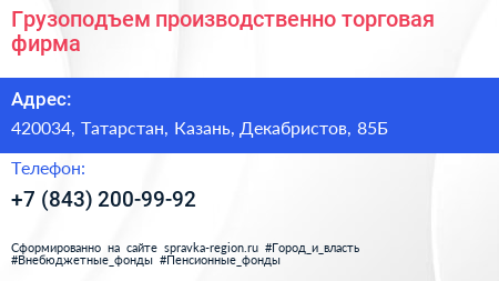 Грузоподъем, производственно-торговая фирма по адресу 420034, Татарстан, Казань, Декабристов, 85Б в дальнейшем Организация, размещена в следующих категориях: