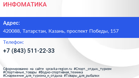 ИНФОМАТИКА по адресу 420088, Татарстан, Казань, проспект Победы, 157 в дальнейшем Организация, размещена в следующих категориях: