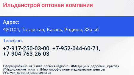 Ильданстрой, оптовая компания по адресу 420104, Татарстан, Казань, Родины, 33а к6 в дальнейшем Организация, размещена в следующих категориях: