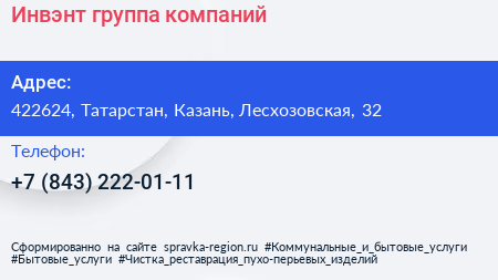 Инвэнт, группа компаний по адресу 422624, Татарстан, Казань, Лесхозовская, 32 в дальнейшем Организация, размещена в следующих категориях: