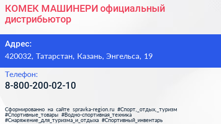 КОМЕК МАШИНЕРИ, официальный дистрибьютор по адресу 420032, Татарстан, Казань, Энгельса, 19 в дальнейшем Организация, размещена в следующих категориях: