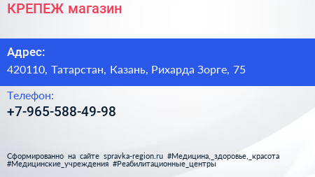 КРЕПЕЖ, магазин по адресу 420110, Татарстан, Казань, Рихарда Зорге, 75 в дальнейшем Организация, размещена в следующих категориях: