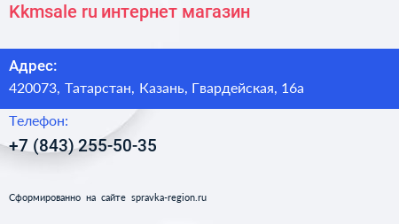 Kkmsale.ru, интернет-магазин по адресу 420073, Татарстан, Казань, Гвардейская, 16а в дальнейшем Организация, размещена в следующих категориях:
