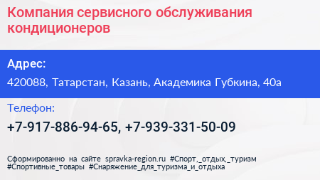 Компания сервисного обслуживания кондиционеров по адресу 420088, Татарстан, Казань, Академика Губкина, 40а в дальнейшем Организация, размещена в следующих категориях: