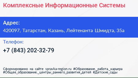 Комплексные Информационные Системы по адресу 420097, Татарстан, Казань, Лейтенанта Шмидта, 35а в дальнейшем Организация, размещена в следующих категориях: