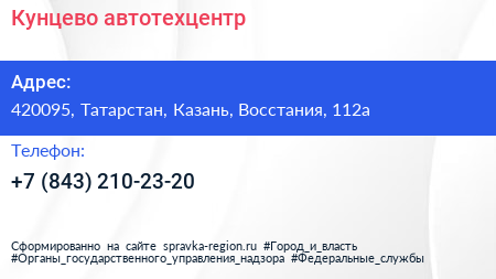 Кунцево, автотехцентр по адресу 420095, Татарстан, Казань, Восстания, 112а в дальнейшем Организация, размещена в следующих категориях: