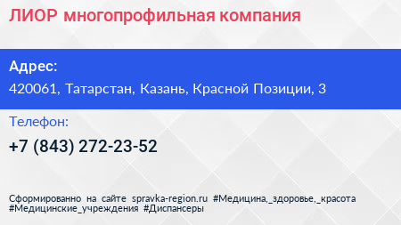 ЛИОР, многопрофильная компания по адресу 420061, Татарстан, Казань, Красной Позиции, 3 в дальнейшем Организация, размещена в следующих категориях: