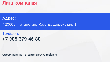 Лига, компания по адресу 420005, Татарстан, Казань, Дорожная, 1 в дальнейшем Организация, размещена в следующих категориях: