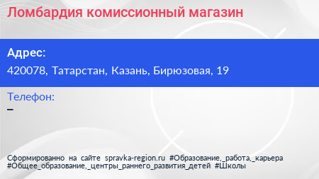 Ломбардия, комиссионный магазин по адресу 420078, Татарстан, Казань, Бирюзовая, 19 в дальнейшем Организация, размещена в следующих категориях: