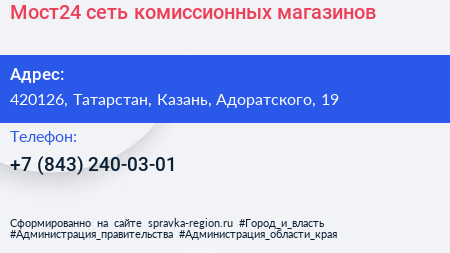 Мост24, сеть комиссионных магазинов по адресу 420126, Татарстан, Казань, Адоратского, 19 в дальнейшем Организация, размещена в следующих категориях:
