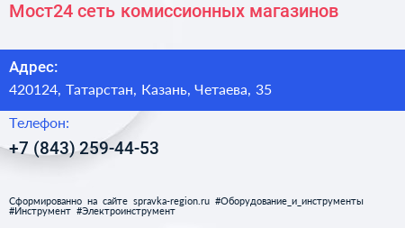 Мост24, сеть комиссионных магазинов по адресу 420124, Татарстан, Казань, Четаева, 35 в дальнейшем Организация, размещена в следующих категориях: