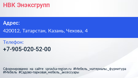 НВК Энэксгрупп по адресу 420012, Татарстан, Казань, Чехова, 4 в дальнейшем Организация, размещена в следующих категориях: