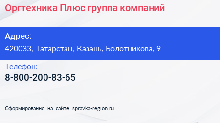 Оргтехника Плюс, группа компаний по адресу 420033, Татарстан, Казань, Болотникова, 9 в дальнейшем Организация, размещена в следующих категориях: