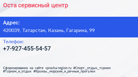 Оста, сервисный центр по адресу 420039, Татарстан, Казань, Гагарина, 99 в дальнейшем Организация, размещена в следующих категориях: