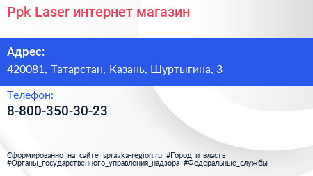 Ppk Laser, интернет-магазин по адресу 420081, Татарстан, Казань, Шуртыгина, 3 в дальнейшем Организация, размещена в следующих категориях: