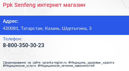 Ppk Senfeng, интернет-магазин по адресу 420081, Татарстан, Казань, Шуртыгина, 3 в дальнейшем Организация, размещена в следующих категориях: