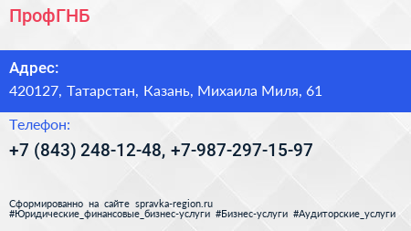 ПрофГНБ по адресу 420127, Татарстан, Казань, Михаила Миля, 61 в дальнейшем Организация, размещена в следующих категориях: