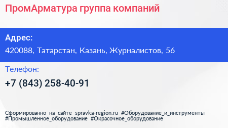 ПромАрматура, группа компаний по адресу 420088, Татарстан, Казань, Журналистов, 56 в дальнейшем Организация, размещена в следующих категориях: