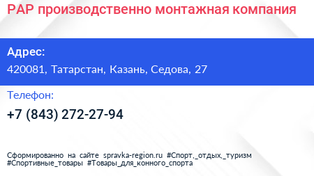 РАР, производственно-монтажная компания по адресу 420081, Татарстан, Казань, Седова, 27 в дальнейшем Организация, размещена в следующих категориях: