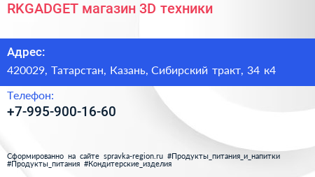 RKGADGET, магазин 3D-техники по адресу 420029, Татарстан, Казань, Сибирский тракт, 34 к4 в дальнейшем Организация, размещена в следующих категориях: