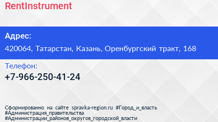 RentInstrument по адресу 420064, Татарстан, Казань, Оренбургский тракт, 168 в дальнейшем Организация, размещена в следующих категориях: