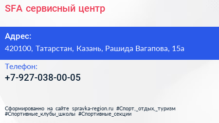 SFA, сервисный центр по адресу 420100, Татарстан, Казань, Рашида Вагапова, 15а в дальнейшем Организация, размещена в следующих категориях: