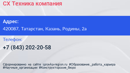СХ Техника, компания по адресу 420087, Татарстан, Казань, Родины, 2а в дальнейшем Организация, размещена в следующих категориях: