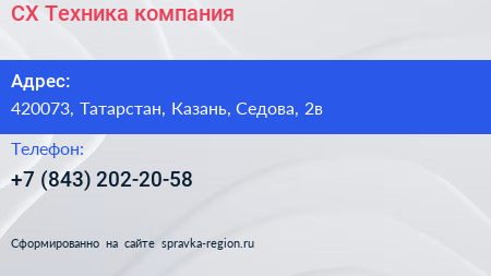 СХ Техника, компания по адресу 420073, Татарстан, Казань, Седова, 2в в дальнейшем Организация, размещена в следующих категориях: