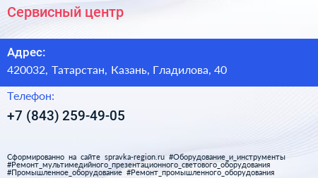 Сервисный центр по адресу 420032, Татарстан, Казань, Гладилова, 40 в дальнейшем Организация, размещена в следующих категориях: